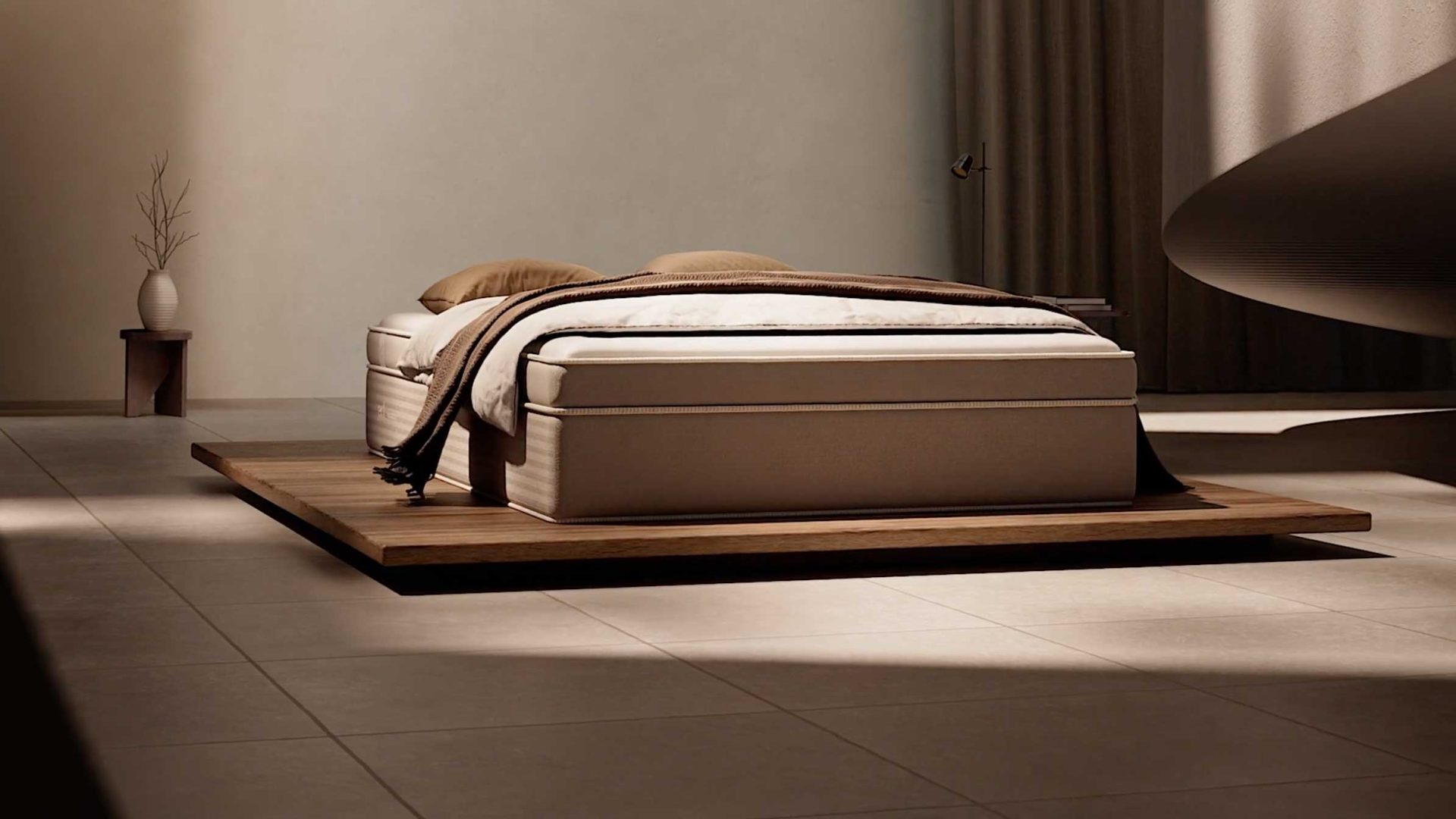 “Through an abstract structure, we conveyed the brand’s philosophy of spinal comfort and back health, while soft-touch materials and layered foam were translated into fluid, tactile visuals that evoke lasting comfort.